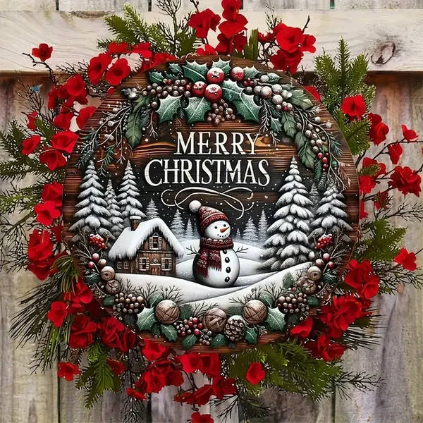 Gezellig houten bord incl.koord voor de feestdagen met daarop een sneeuwpop met besneeuwde dennenbomen. Leuk voor buiten aan de deur met daar omheen een slinger van dennentakken. Hoe welkom zullen uw gasten zich voelen bij zo'n gezellige binnenkomst. Neus nog even rond om 1 pakketje te maken van uw aankopen.