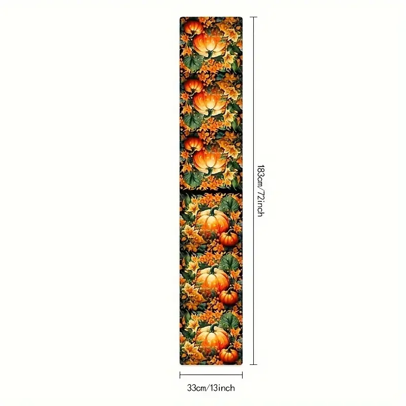 Tafel loper met pompoenen en herfstbladeren als decor, 100% geweven polyesthervezel. Prachtige warme herfstkleuren voor een gezellige tafel. (0089).Gratis verzending als brievenbuspakket.