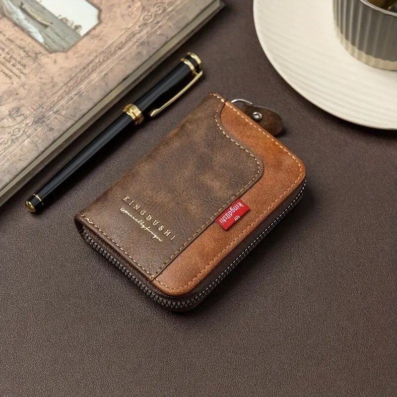 Mooie stevige portemonnee zowel voor dames als heren in vintagestijl, PU-leer, maat 11 x 2 x 7,5 cm. Ruim voldoende vakjes voor al uw kaarten en papiergeld. (0114)bruin.