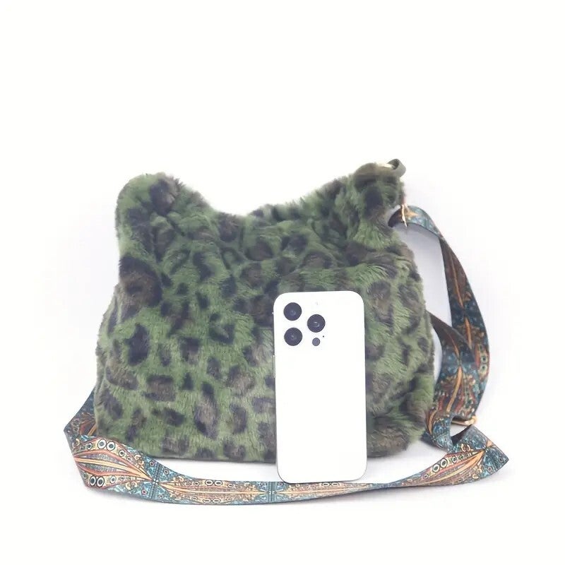 Handige en vlotte schoudertas in een dierenprint in het groen, ritssluiting, gevoerd, maten 24 x 9 x 24 cm. (0123)
