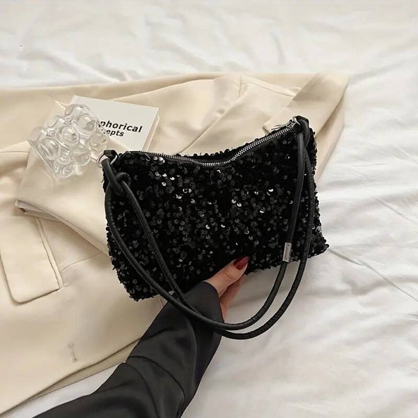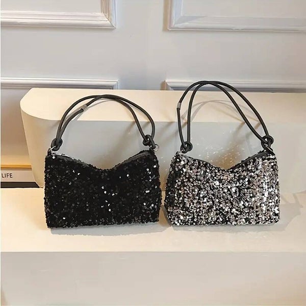 Stijlvolle pailletten avondtas, gevoerd, rits, handvat, preppy, gewoon iets wat je avondje uit nog leuker maakt. (0127).