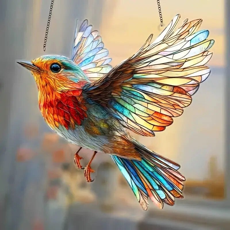 Mooi vrolijk vogeltje in kleurrijke aquakleurige kleuren. Doorsnee 20 cm. (0221) Wordt gratis als stevig klein pakketje verzonden.