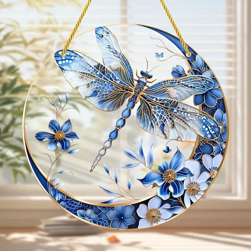 Heel fijntjes ziet deze libelle er uit in blauwe kleuren. zeer mooi gevormd en weergegeven, sieraad voor je raam, incl. koord. (0224). Doorsnee 20 cm. Word secuur verpakt verzonden.