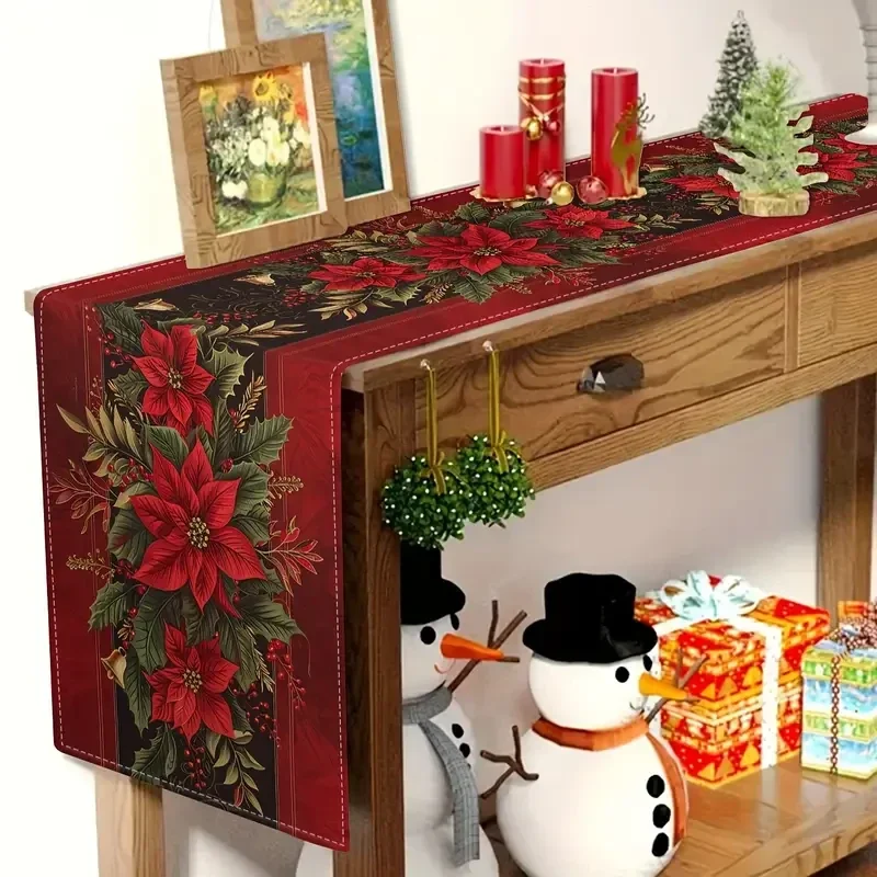 Rood en groen en rode kerststerren horen bij elkaar. Mooie tafelloper 100%polyester, groen blad en rode bessen maken het af. Makkelijk schoon te houden. Voor een feestelijk kerstdiner. Mooie lange maat 33 x 2.74 cm. (0403)
