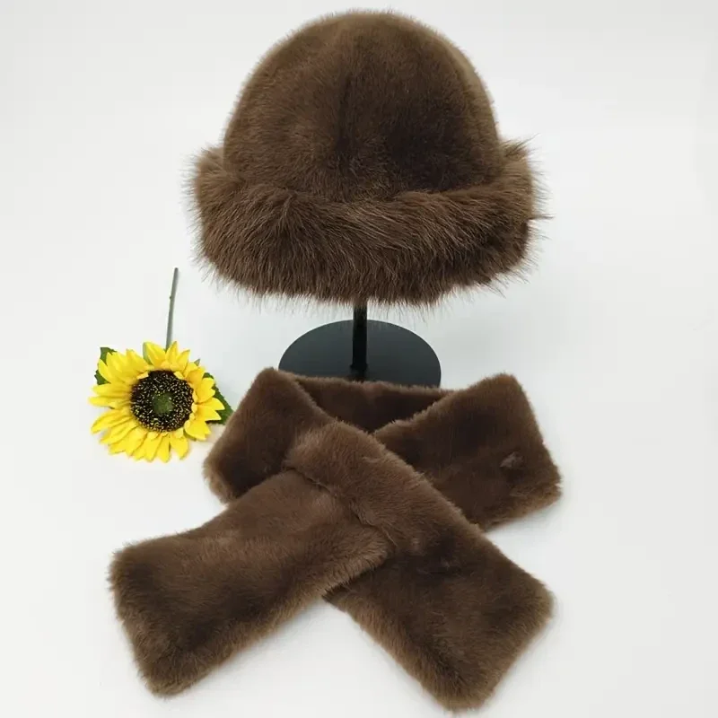 Warme pluche bontgevoerde muts en sjaal